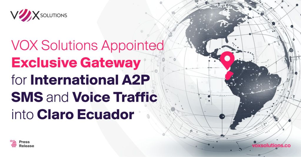 VOX Solutions is pleased to announce its appointment as the exclusive gateway for international Application-to-Person (A2P) SMS and Voice traffic delivery into Claro Ecuador’s network, Ecuador’s leading mobile operator. This role results from a strategic interworking agreement between VOX Solutions and Claro, establishing a direct channel for the secure termination of international A2P SMS and Voice traffic into Claro’s network. Read more